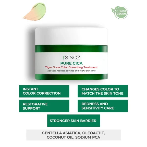 SiNOZ Pure Cica Tiger Grass Tone Equalizing Cream 15ml | سينوز كريم معادلة لون البشرة بخلاصة عشبة النمر من سيكا النقي 15مل