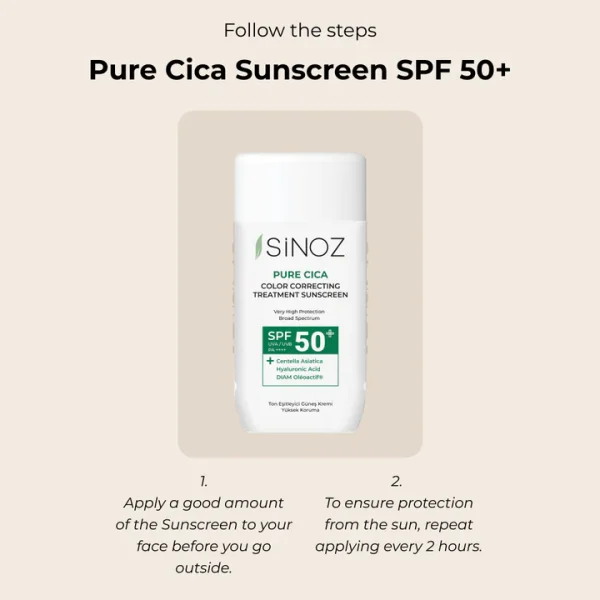 SiNOZ Mineral UV filter – Pure Cica Color Correcting Fluid Sunscreen SPF 50 + 50ml | سينوز فلتر معدني للأشعة فوق البنفسجية – سائل تصحيح لون البشرة Pure Cica واقي من الشمس بعامل حماية من الشمس SPF 50+ 50مل