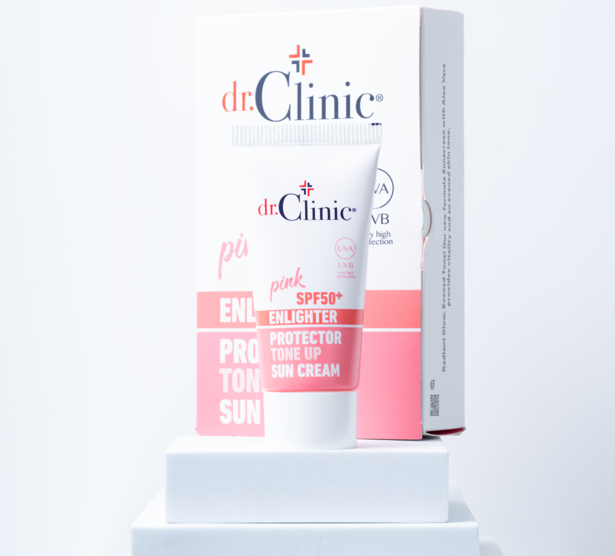 واقي شمس من دكتور كلينك بعامل حماية من الشمس SPF50، تركيبة كريمية ناعمة سهلة الدمج، بخلاصة الصبار، يحمي البشرة من التأثيرات الضارة لأشعة UVA وUVB والضوء الأزرق، يوحد لون البشرة ويمنحها توهجًا طبيعيًا
