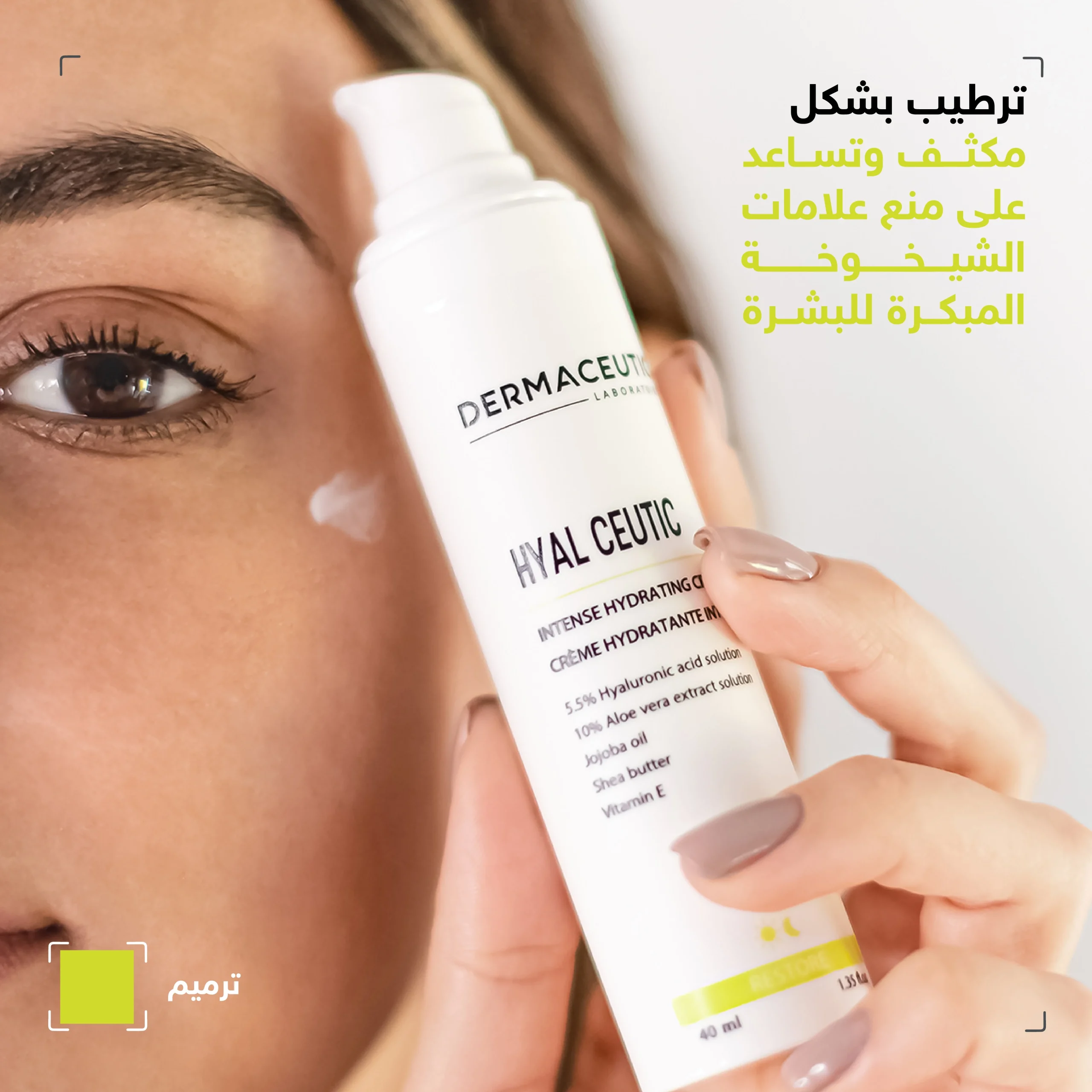 تتضمن التركيبة حمض الهيالورونيك الذي يساعد في ترطيب وتجديد البشرة، بالإضافة إلى الألوفيرا وزبدة الشيا وزيت الجوجوبا لتنعيم وتجديد البشرة.