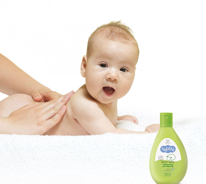 استمتعي بلمسة ناعمة كبشرة الأطفال، مغذية ومحمية بحليب الجسم من بيبيل.