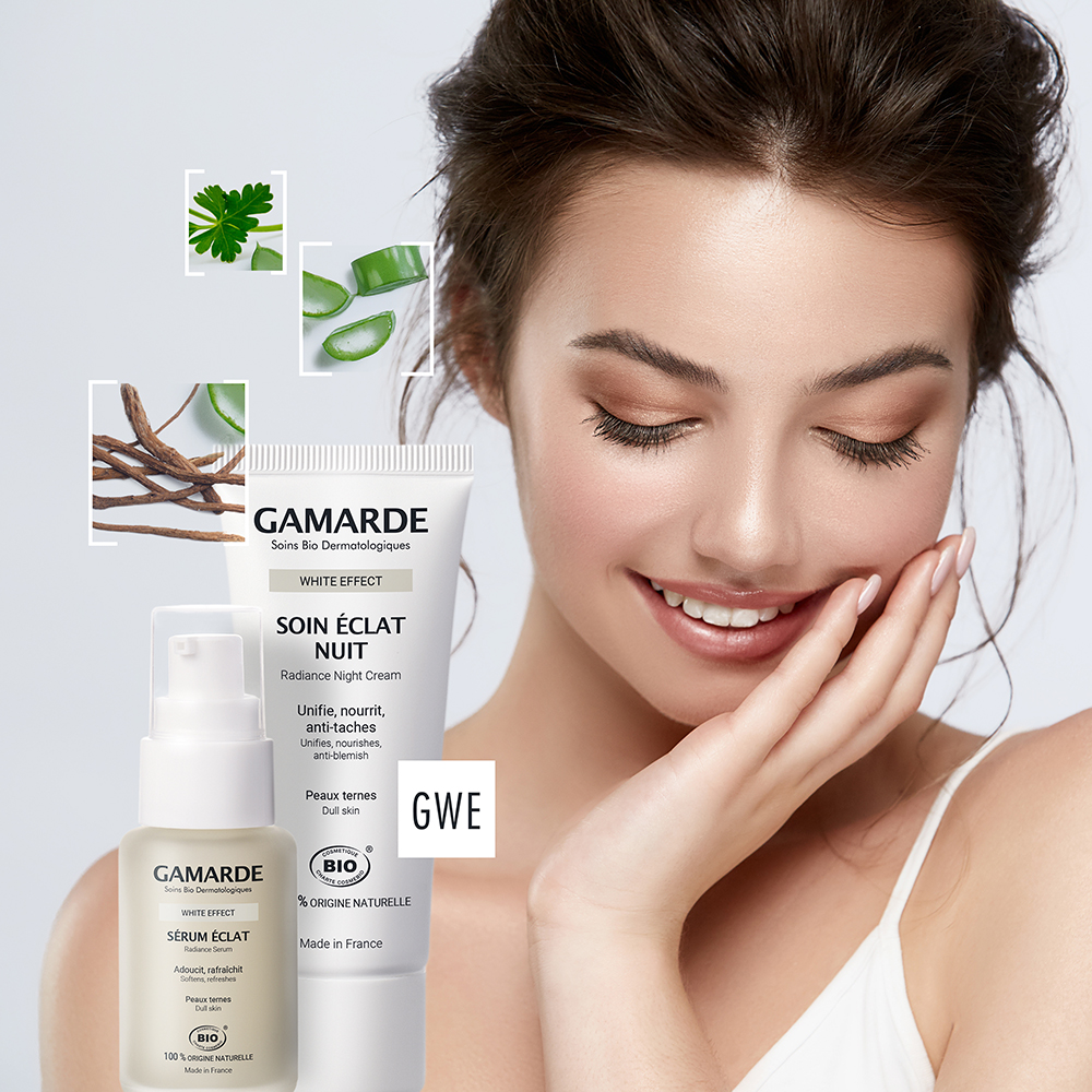 تحتوي تركيبته على مركب GWE® العضوي المعتمد لتفتيح البشرة،