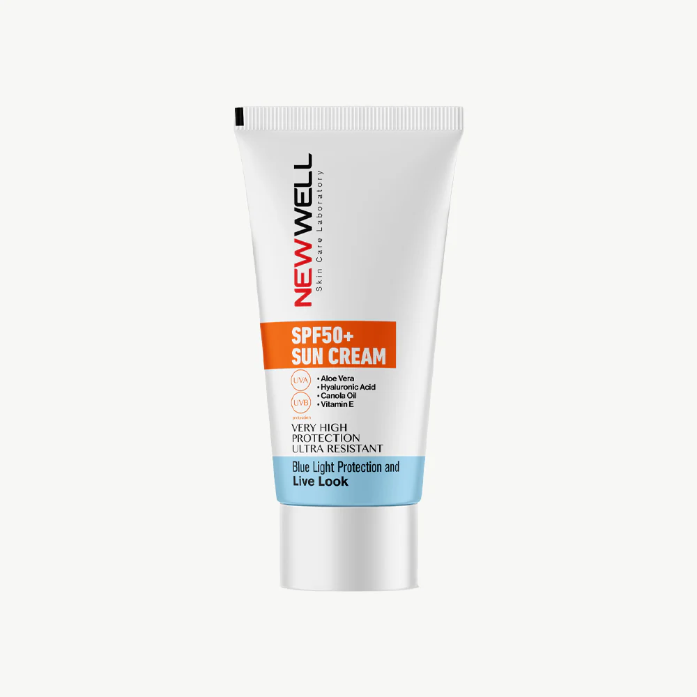 احمِ بشرتك بفعالية من أشعة الشمس UVA/UVB والضوء الأزرق الصادر من الشاشات مع New Well Sun Cream SPF50+.